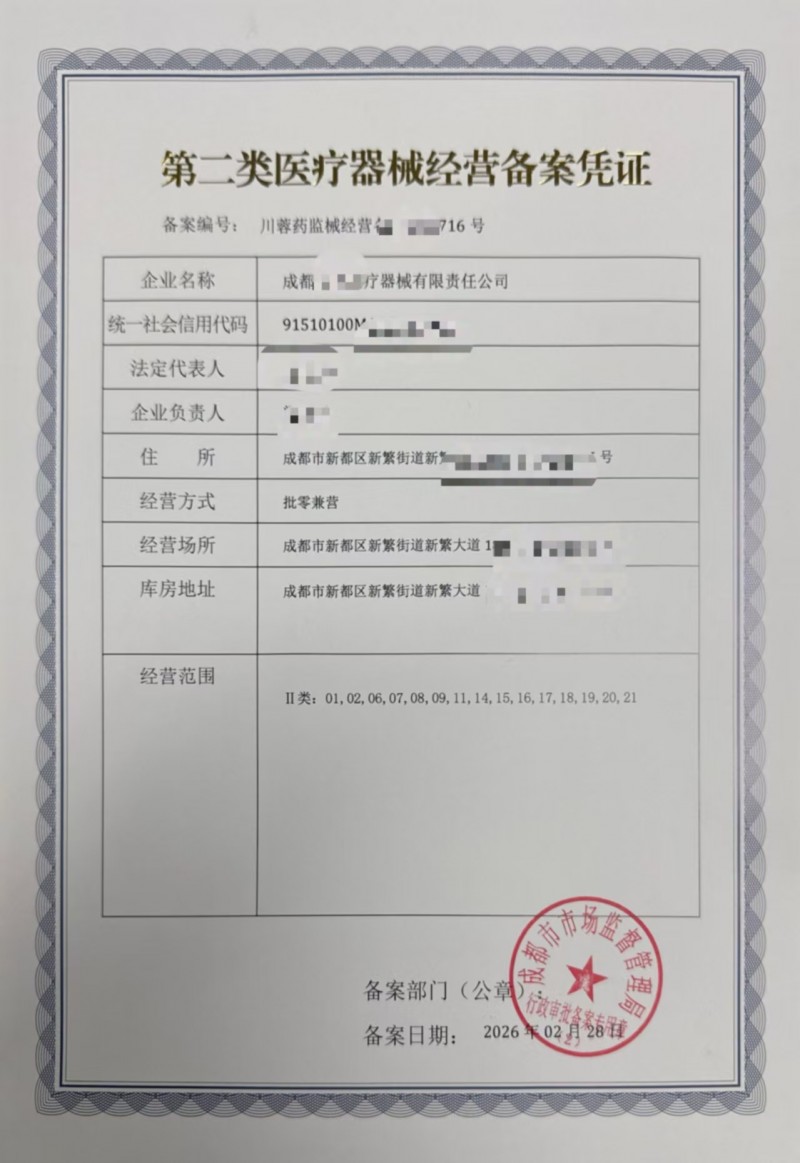 二类医疗器械经营备案申请凭证成都第三类许可证;