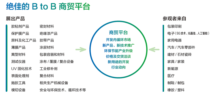 展会将以行业高性能、绿色发展为宗旨,打造更多产品主题展区及各类热门产品区,包括UV/EB固化技术及产品区、电子材料展区、新兴用胶展区等。