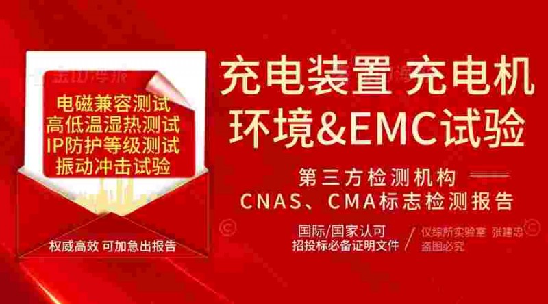 检测各类充电器、充电装置、车载充电机、充电柜的环境可靠性试验、电磁兼容测试、电气安全(绝缘电阻、抗电强度、泄漏电流、功率功耗测试等)、IP54、IP65、IP68防护等级测试等。