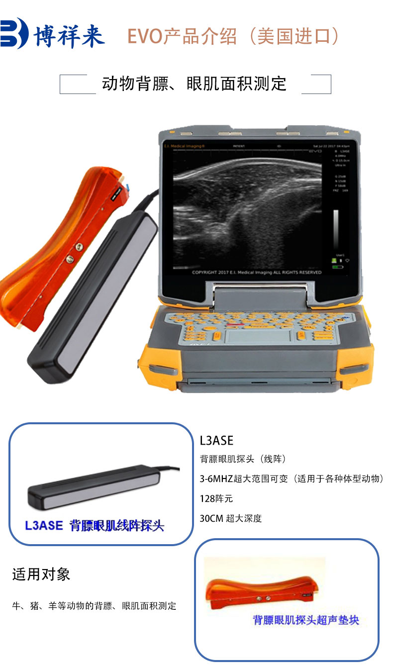 EVO背膘眼肌设备主要可用于猪牛羊等动物背膘、眼肌面积测定,OPU活体采卵的应用,小动物及海洋动物超声检查应用,兽医,牛,马,宠物(小动物),猪,外来物种,特种动物、海洋动物和小反刍动物等妊娠诊断及产科疾病的检查。【15515670076上门试机器】