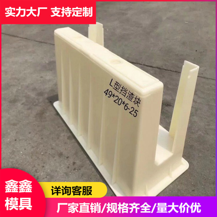 保定鑫鑫塑料挡砟块模具是一种主要采用L型设计的混凝土产品模具。由于存在大量的L型结构,通常壁厚设计不会超过8厘米,常见的壁厚为6厘米。适合人工预制的物品,其长度不会超过500mm,而宽度和高度则在20-30cm之间。此物品的体积相对较小。通常情况下,我们按照图纸要求进行定制,不过除了常见的挡板尺寸外,也需要针对特殊尺寸进行单独的定制。塑料挡渣块模具又称挡渣块模具,采用聚丙烯塑料注塑成型。表面光滑无毛刺,使用过程中易脱模,使用寿命长。由于压载块模具体积小,应按照小型预制块的操作步骤进行生产。