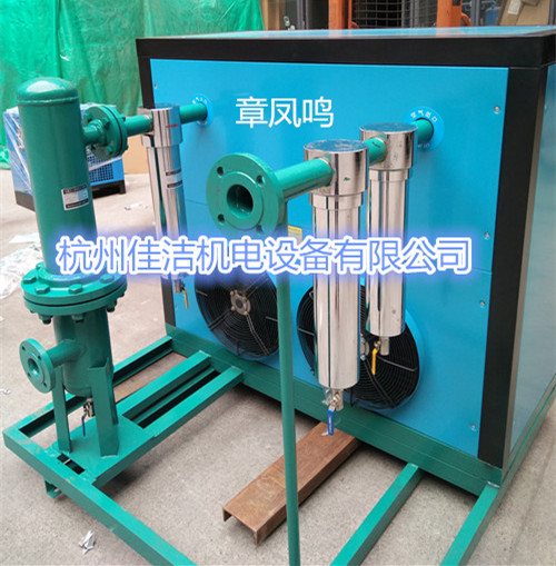 冷干机特点:1、制冷压缩机采用高温型全封闭制冷压缩机,运转稳定,噪声低,性能可靠,省电寿m长。 2、热交换器、冷凝器选用g效螺纹管,传热系数高,因而体积小,结构紧凑。筒体材料选用不锈钢或碳钢镀锌,可避免对夺压缩空气的二次污染。 3、制冷控制元件均采用制冷元件,性能优良,具有热力膨胀阀的节流降压功能,热气旁通阀的能量调节功能,油分离器的冷冻油的油分保护功能,冷媒高低压控制器的冷媒高低压保护等功能。 4、气液分离采用旋风分离与不锈钢丝网捕雾有机结合的气液分离器,具有气液分离效果彻底,避免水份的二次蒸发,冷干机的干燥效果的重要作用。它比旋风分离器分离效果好得多,同时又比过滤式气液分离器使用成b低,具有较市制性能价格比。 5、设备结构设计合理,便于维护保养,箱式外形,美观大方。 6、无基础安装。 7、实时显示运行参数。