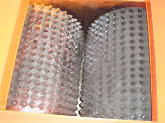 第四:双级破碎机的锤头磨损坏了,也不需要修复,因为是独特的移位调隙技术,只要调隙一下之间的间隙就可以继续使用,一副锤头可以反复使用,能顶几副使用。