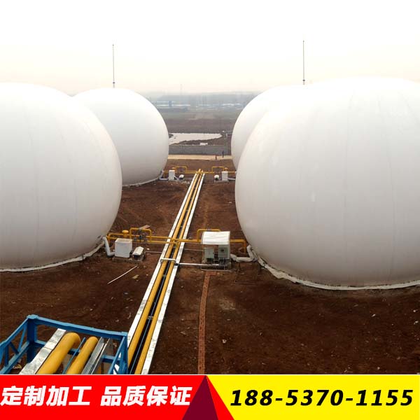 双模气柜原理:底膜、内膜、外膜共同形成两个空间。内膜空间作为储气空间储存各种气体,外膜与内膜夹层的空间作为调压空间。当储存的气体增加时内膜曲张,控制设备排出外膜的调压空气腾出一定的容量。当内膜储存的气体较少时控制设备向调压层注入空气,平衡柜内的压强,稳定外膜刚度。(即用一个软体球形作为储气柜,储存的气体容积变少控制设备就自动充空气填补,储存气体增多安全保护器就释放空气以平衡压力。为不让气体混合,储存的气体与空气之间使用内膜隔离开。)济宁市力扬环保设备制造有限公司边经理——18853701155(VX同步)