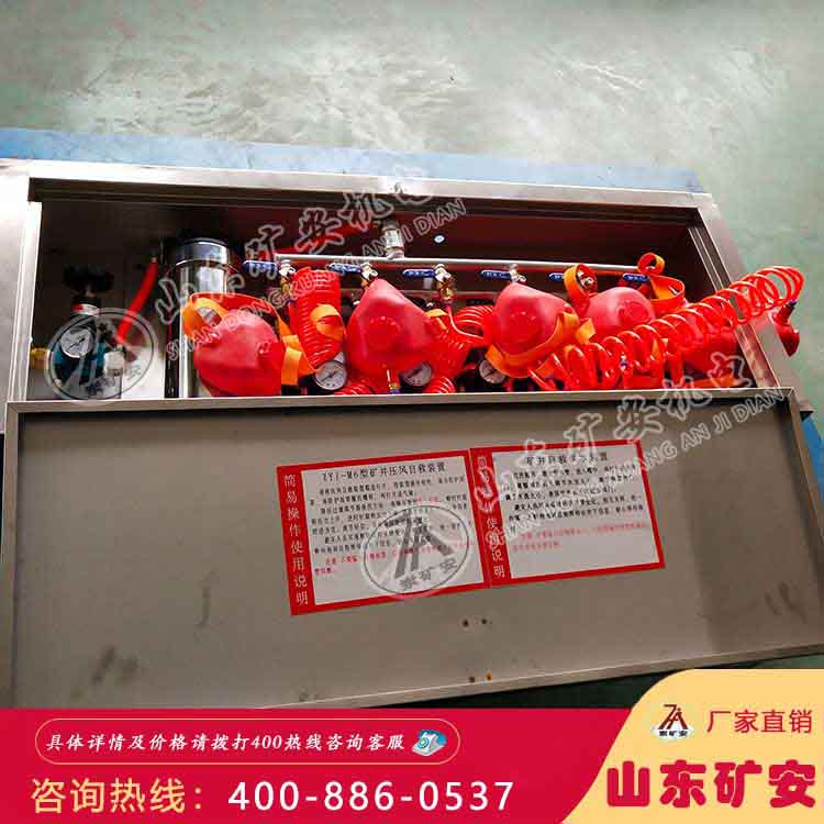 ZYJ(A)型矿井压风自救装置主要用于煤矿井下救灾防护,kuangan03当煤矿井下发生事故或出现有害气体造成工作人员不能正常呼吸时,工作人员可就近进入自救装置处避灾,通过该自救装置输送的新鲜空气,使避灾人员能长时间呼吸轻松,达到an全避灾、稳定工作情绪的目的,一般情况下井下安装自救装置的个数不得少于井下全员的三分之一。