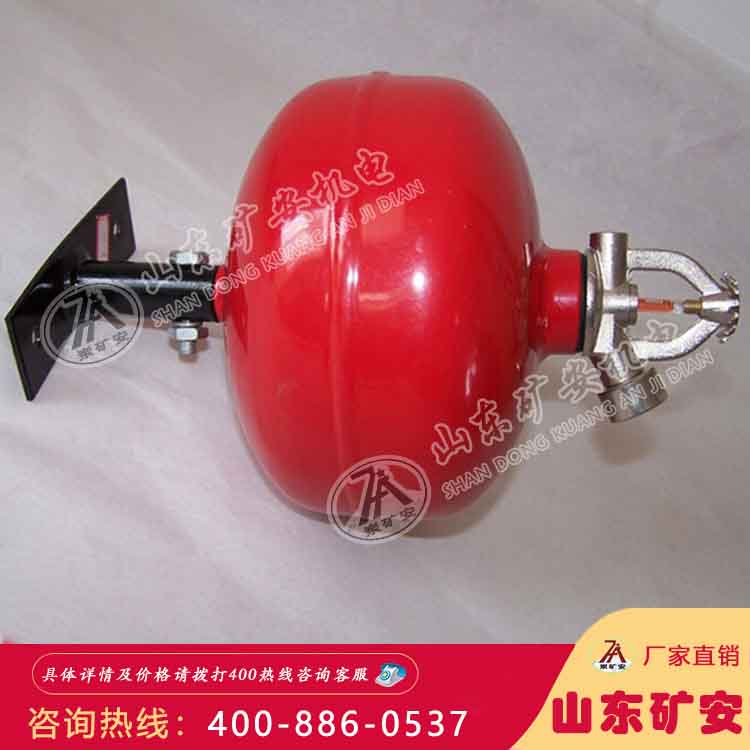悬挂式干粉灭火器由罐体、感温玻璃喷头、压力表、吊环等部件组成。内装碳酸氢钠干粉灭火剂,充以适量的驱动气体氮气。在喷口部位装有感温玻璃喷头,起火时温度升高,内部的灭火药剂发生分解,汽化,膨胀。当膨胀力超过玻璃管的耐压强度的时候,玻璃管发生爆破,汽化产生的二氧化碳和氨气,二氧化碳直接夺取空气中的氧气,氨气可you效降低空气的温度,从而达到灭火的目的。