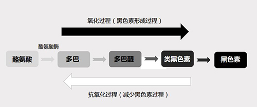 维生素C及其衍生物具有极强的抗氧化性,对各种黑色素中间体起到还原的作用,可以阻碍酪氨酸到黑色素各点的氧化链反应。