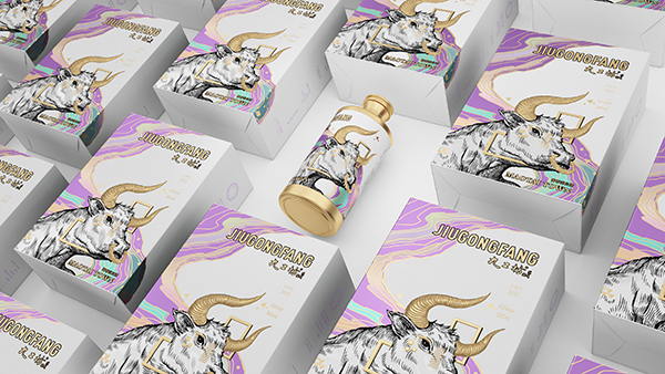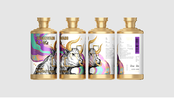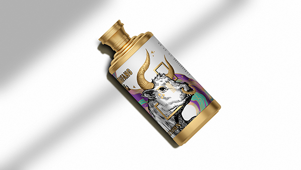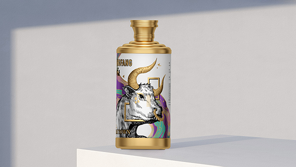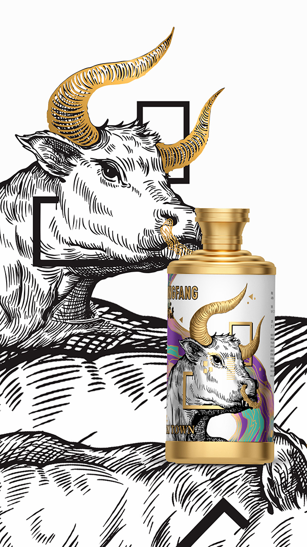 牛作为传统生肖文化符号,用现代插画的手法设计演绎,实现传统文化与现代审美的碰撞。再辅以抽象饱满的色彩,将传统元素和时代审美相融合,传达“继承”与“创新”并存的精神内涵。在实现将传统酒文化与现代时尚审美结合的同时,品味酒香悠悠余韵。