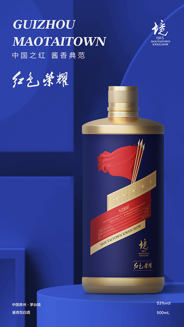 鲜红的旗帜是热血军心,闪耀的金星是坚定意志。金色瓶身与烫金呼应,彰显庄严大气。敬军心,爱祖国,致敬红色荣耀。中国之红,酱香典范。