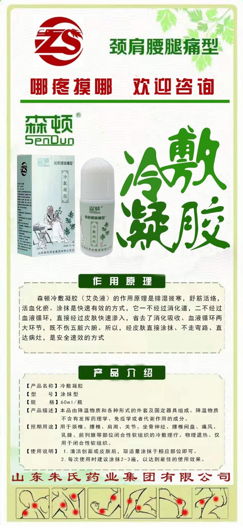 【产品优势】 森顿筋骨冷敷凝胶(艾灸液)的作用原理是排湿拔寒,舒筋活络,活血化瘀。涂抹是快速有效的方式,它一不经过消化道,二不经过血液循环,直接经过皮肤快速渗入,省去了消化吸收、血液循环两大环节,既不伤五脏六腑。所以,经皮肤直接涂抹、不走弯路、直达病灶,是安全速效的方式