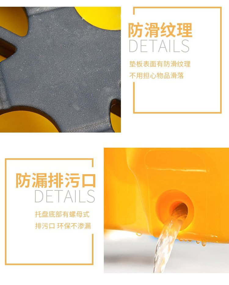 防渗漏塑料托盘采用加厚侧边框及中间承重结构,坚固耐用。防泄露塑料托盘双叉车插口便于搬运,当出现泄漏时,所有液体会沿托盘盛漏区域内,不会污染现场环境。华康环保生产的防渗漏塑料托盘有不同型号的规格可以选择,满足各种尺寸需求,便于您合理规划化学品或对化学品仓库经理整改。防渗漏托盘整体采用一体成型,无缝结构设计,防漏结构通过测试,避免泄漏发生。采用线性低密度聚乙烯材质生产,具有良好的耐酸耐碱耐腐特性,避免造成环境危害。13903174226