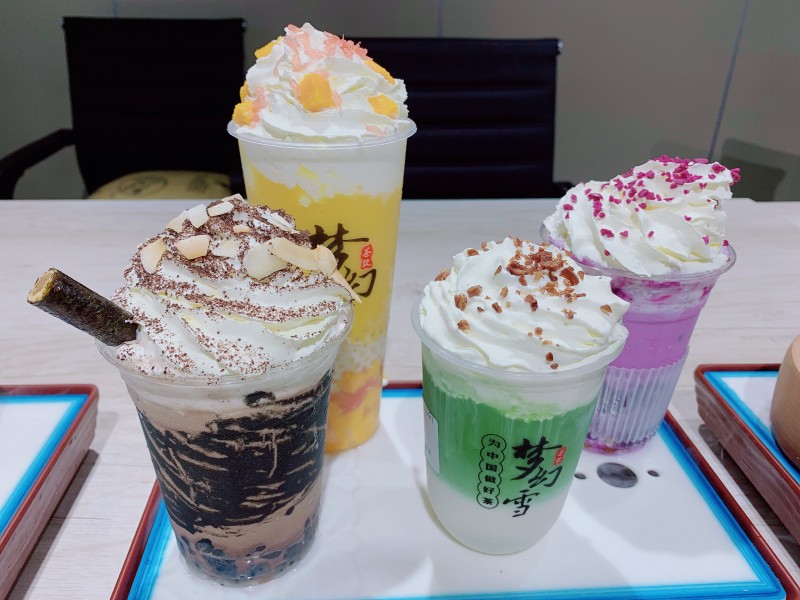 梦幻雪茶饮以高颜值个性化的设计快速吸粉,简约而不简单,店面形象一体化,态度鲜明,瞬间吸引眼球,符合当下年轻人的审美要求,激发消费者的进店欲望,较同类品牌更易提升到店率。