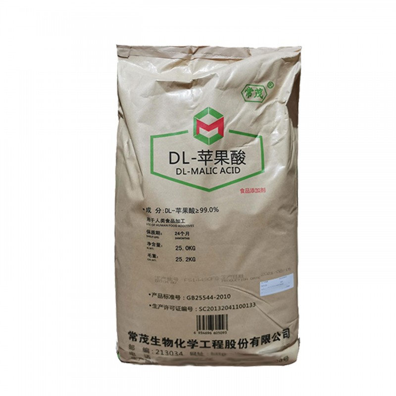 DL-苹果酸的口感接近天然果汁并具有天然香味。广泛应用于酒类、饮料、果酱、口香糖等多种食品中。DL-苹果酸与柠檬酸相比,苹果酸的酸度更大(酸味比柠檬酸强20%)、产生的热量更低、口味更柔和(具有较高的缓冲系数)、 滞留时间更长。腐蚀破坏作用比较弱,相应的牙釉质磨损较小,不损害口腔与牙齿。苹果酸是新一代的食品酸味剂,被生物界和营养界誉为“理想的食品酸味剂”。