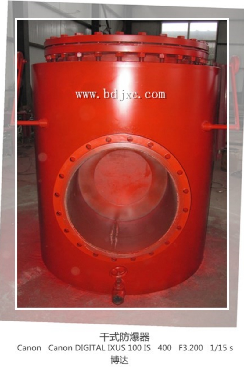防回气防爆装置的型号为GFQ型,防回气防爆装置是一种用于煤矿瓦斯管路爆炸和燃烧时防止回火、防止回气,同时具有防爆功能的专用装置。