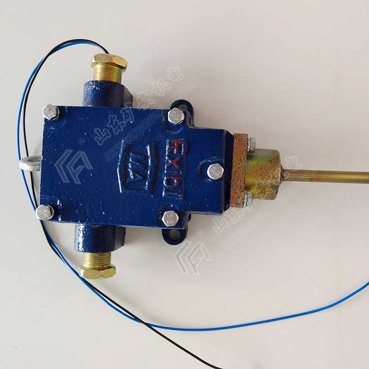 GUJ30堆煤传感器工作原理为机械开关式。当出现运输机埋机头、满仓、满煤漏斗时,煤触及煤位传感器的触头并推动触杆偏离中心线之间的动作摆角大于15±3°时,传感器动作,本传感器能自动切断运输机的电源实现煤位保护。