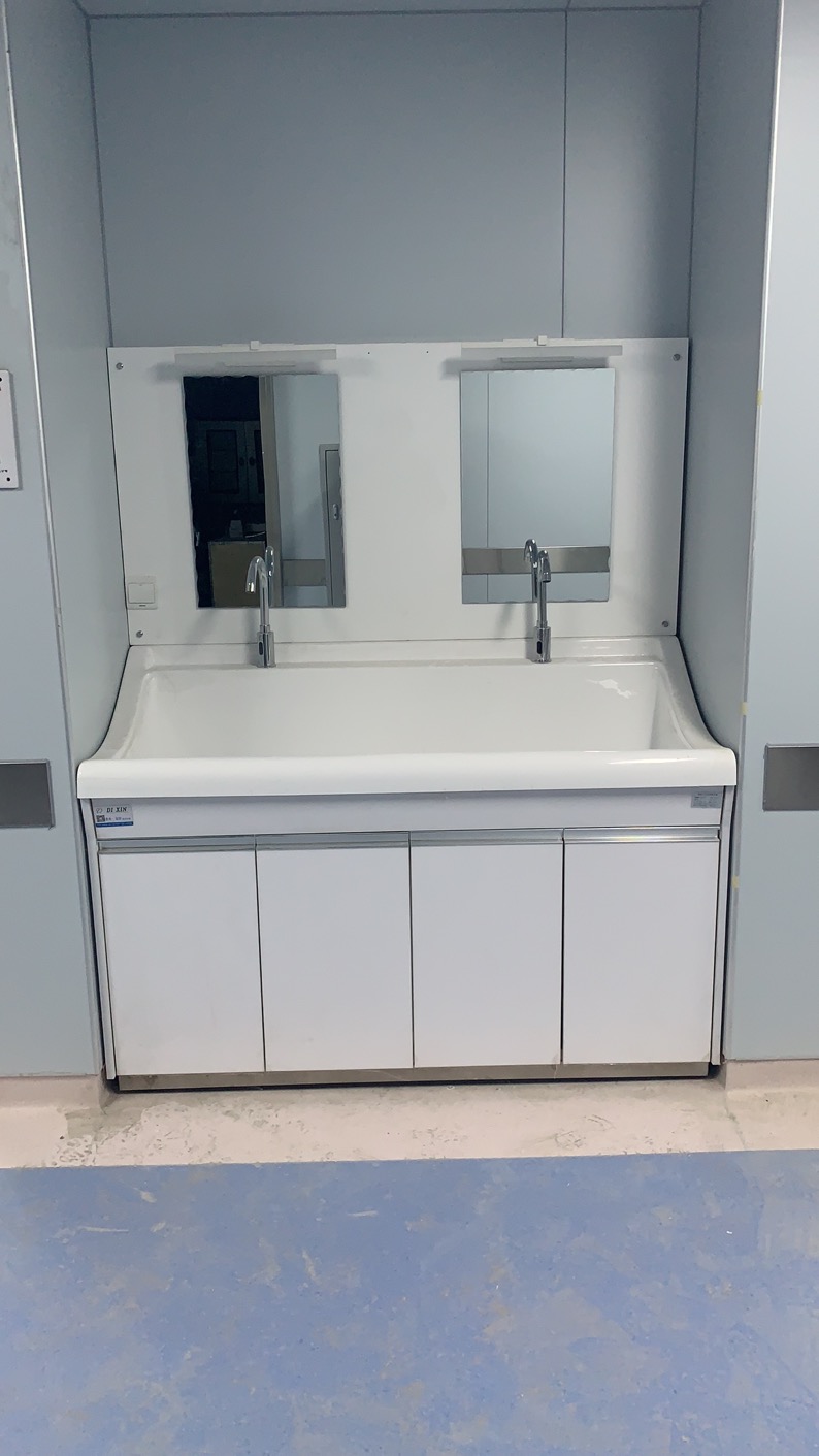 高分子洗手池材质特点:采用高分子材料一次吸塑成型,出水方式有:感应式、膝控式、脚踏式和手动开关,一台洗手池可客户要求选择单一出水方式或多种出水方式。洗手池分高背和低背,高背总高度1800mm,配有美容镜,照明灯,皂液器,可按客户要求配置烘手器和热水器。低背板无配置。