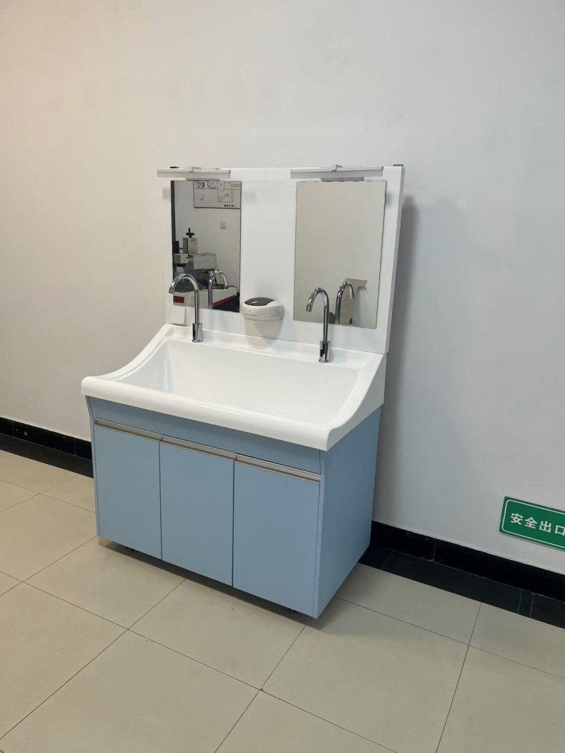 采用高分子材料一次吸塑成型,出水方式有:感应式、膝控式、脚踏式和手动开关,一台洗手池可客户要求选择单一出水方式或多种出水方式。洗手池分高背和低背,高背总高度1800mm,配有美容镜,照明灯,皂液器,可按客户要求配置烘手器和热水器。低背板无配置。