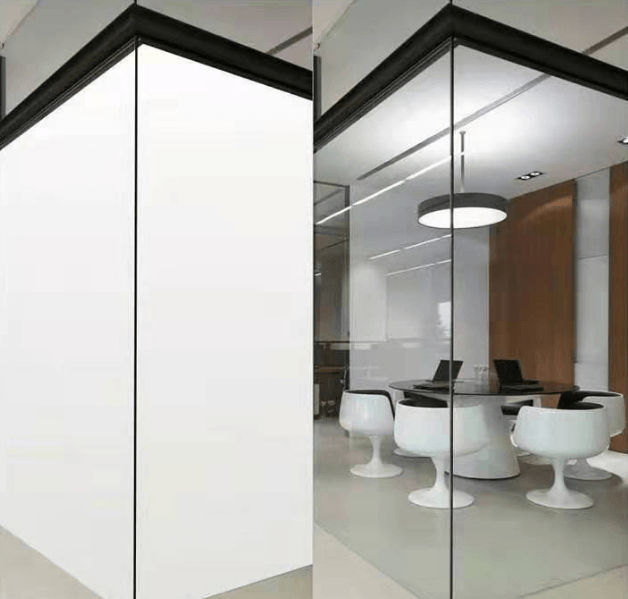调光玻璃不仅具有普通玻璃的所有特性,还可以隔音、隔热、隔紫外线,同时具备隐私保护功能,通过控制电流的通断可控制透明与雾化状态,还可以让玻璃成为投影介质,在断电时可当做背投成像玻璃使用,代替幕布的笨重,可遥控一键控制开关,简单方便,成像清晰,用于沿街广告时,能吸引路人眼球。