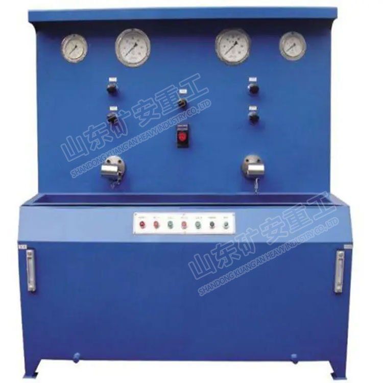 本试验台是矿用综采液压支架阀组、液压单体支柱、阀出厂性能的检验测试设备。该试验台适用于电液阀、矿用安全阀、液控单向阀、单向锁、双向锁、截止阀、操纵阀、胶管,立柱,千斤顶,液压缸等矿用液压元件的出厂性能试验和检修后的综合性能测试。能进行高低压力试验、动作试验、强度试验、跑合试验等项目的综合试验。Kuangan002