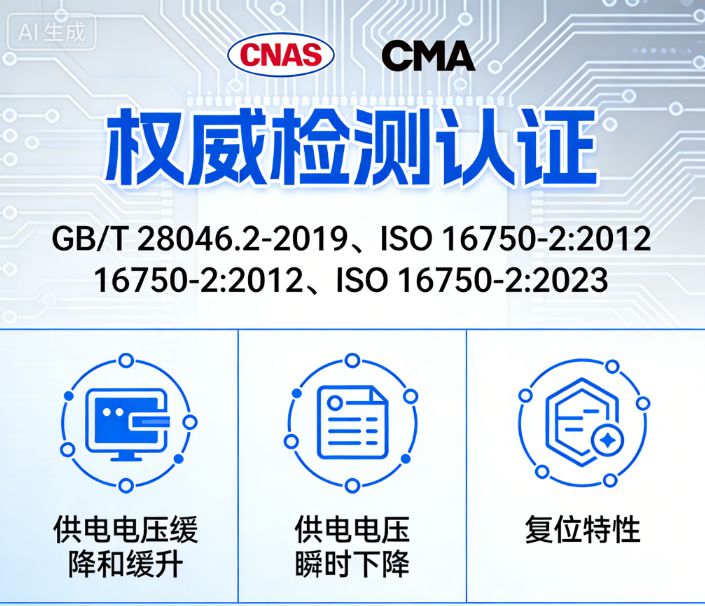复位特性与启动特性测试聚焦设备的动态响应性能。复位特性测试验证电子设备在供电异常恢复后,能否快速、准确地恢复正常工作状态,无数据丢失或功能紊乱;启动特性测试则模拟车辆启动时的电压变化环境,检测设备在启动阶段的启动成功率和运行稳定性,保障车辆每次启动都能顺利激活各类电子系统。