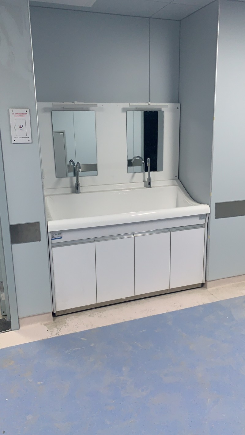 高分子洗手池材质特点:采用高分子材料一次吸塑成型,出水方式有:感应式、膝控式、脚踏式和手动开关,一台洗手池可客户要求选择单一出水方式或多种出水方式。洗手池分高背和低背,高背总高度1800mm,配有美容镜,照明灯,皂液器,可按客户要求配置烘手器和热水器。低背板无配置。