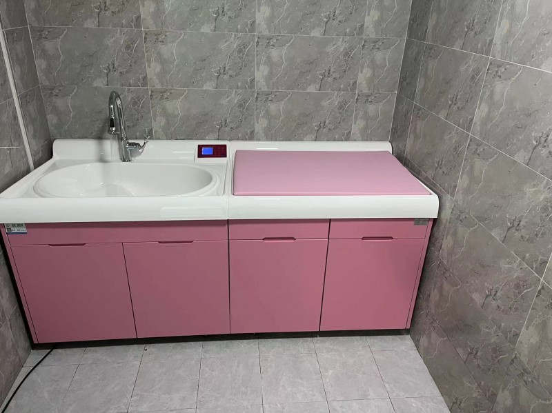 洗礼池:池内设计的曲线模型与婴儿后背完全贴合,让婴儿洗浴时保持舒适的姿势,台面设计与池为一整体,与豪华背板都采用面层为优质的A级PMMA高分子复合材料一体成型,具有抗压强度高,柔韧性好,耐候性优良;抗氧化,耐酸碱,表面光滑,易清洗(表面细菌残留量远远低于不锈钢,人造石,陶瓷盆和其他普通塑料),耐磨损,寿命长,防腐防潮,不易生锈,对人体无毒性等特征及优点。池边全弧形设计美观大方,同时裙边防返水设计,让多余的水从导水沟排走护理台:采用全台面外包全新人造皮革,内置加厚海绵,柔软舒适安全,并且防水防尿,台面为软包,防水防潮,颜色可定制,护理台内部做抽屉,分层处理,为临床操作医生提供足够的储物空间