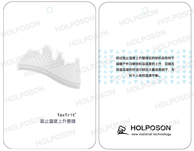夏日炎炎,日光强烈,阳光是有能量的光线,其中包括远红外、可见光、紫外线等。深色黑色面料会吸收可见光并转化为热量,使深黑色面料升温速度高于白色浅色面料。Textrit® COOL-COMBO是专为服装面料开发的阻止温度上升系列助剂,是由三种组分的助剂组成的温度上升整理剂,当纺织品面料曝光在阳光下时能屏蔽紫外线,并释放阻止温度上升因子,可以有效的降低面料表面的温度。