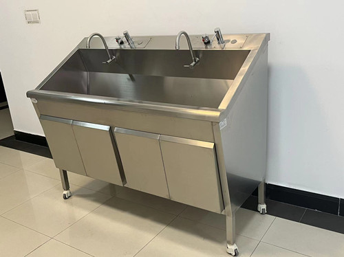 不锈钢洗手池出水方式分为:感应式、膝碰式、脚踏式