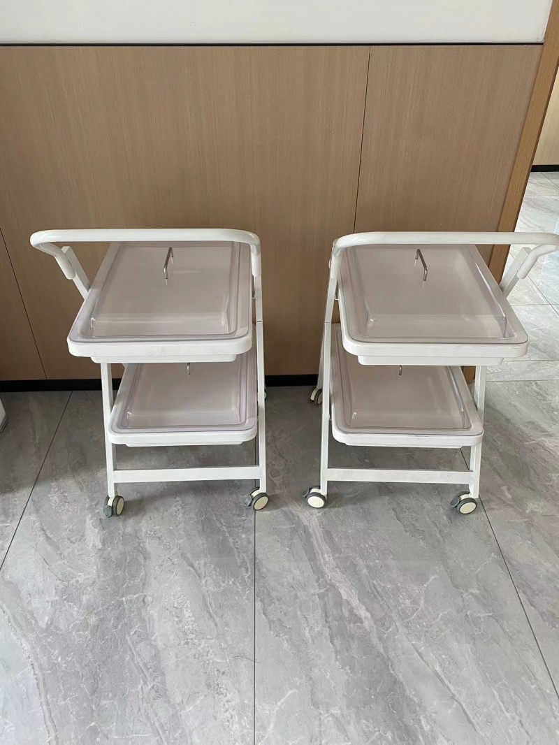 小推车二层、三层独立式设计,周转盘材料由高分子复合材料独立开模制成,车体由钢体喷塑而成,具有耐腐蚀、不沾水、车行顺畅、取放方便等优点。盘内内镜存放导航隔条使污染部分分离。多层设计使客户在使用过程中可将清洁和污染的内镜分层标明后置放,可达到高效周转,避免交叉感染等功效。