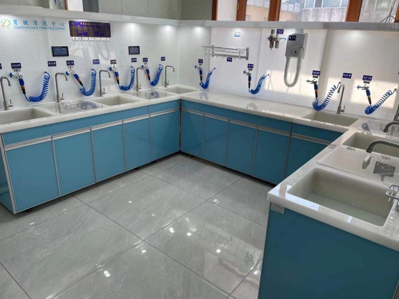内窥镜清洗工作站是我公司根据卫生部《内镜清洗技术操作规范(2016年版)》的要求,结合国外先进技术及工艺,产品采用人性化及标准化设计、选材精良考究、配置灵活性强、自动化程度高、操作简洁方便、使用安全可靠、性价比高、清洗效果显著,广泛适合国内不同规模医疗机构开展内镜及其它器械清洗工作,是一种为内镜诊疗工作中对内镜清洗的设备。它由台面/清洗槽,柜体/功能背板,豪华内镜干燥保养台,自动灌流器,空压机,高压水枪,专用水龙头,内镜吹干机,灌流器自动接头,水源中心控制系统,中心电源控制系统,中心气体处理器,过滤水装置,专用方槽盖,内镜侧漏系统等,可选配追溯系统,超声波清洗机,纯水机,内镜转运车等。