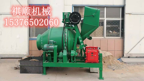 煤矿用混凝土搅拌机属于自落式双锥反转出料移动式混凝土搅拌机.可搅拌塑性和半干硬性混凝土.搅拌简正转搅拌,反转出料。适用干矿山井下巷道铺设、煤仓建设、用室施工等:体积小,可适用千地面和巷道等窄小工作环境;齿轮传动.结构紧凑.运转可靠;电控系统均采用安标产品,可适合干隔爆环境下作业。