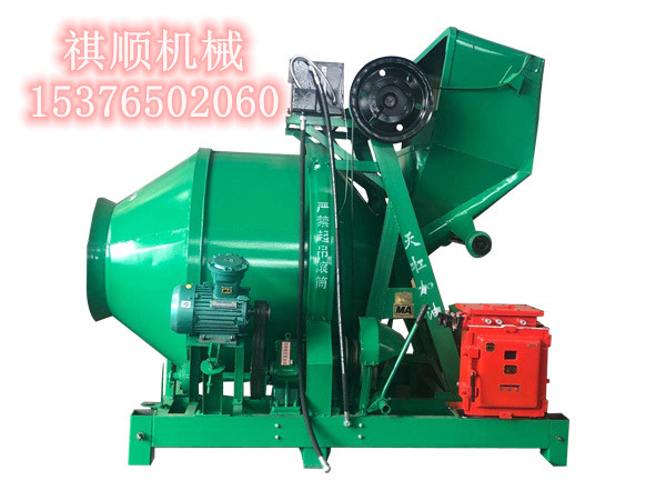 煤矿用混凝土搅拌机属于自落式双锥反转出料移动式混凝土搅拌机.可搅拌塑性和半干硬性混凝土.搅拌简正转搅拌,反转出料。适用干矿山井下巷道铺设、煤仓建设、用室施工等:体积小,可适用千地面和巷道等窄小工作环境;齿轮传动.结构紧凑.运转可靠;电控系统均采用安标产品,可适合干隔爆环境下作业。