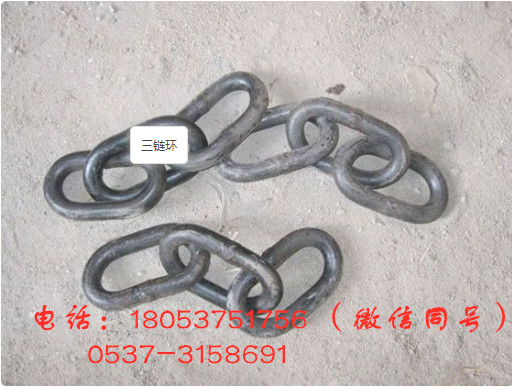 三环链是目前我国矿山地面和井下巷道窄轨铁路运输车辆,两节车连接用的重要元器件。使用时将转环链放于两车之间,再通过插销将转环链两端(碰头座)的上下销孔连接在一起而后将插销锁紧即可。三环链的使用减轻了钢丝绳损坏的机率增加了安全性和可靠性.18053751756