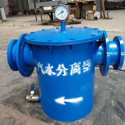 气水分离器适用矿井压风管道汽、水、杂质分离、去除蒸汽和压缩空气系统中夹带的液滴,分离气体中的固体颗粒、各种气体的气液分离。有效分离压风管道内的水分、杂质,净化气体。