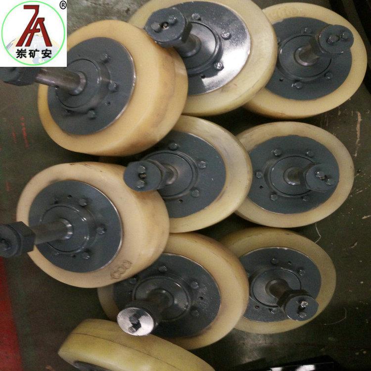 3、可用缓冲装置来方便的调整滚轮与罐道间的位置。