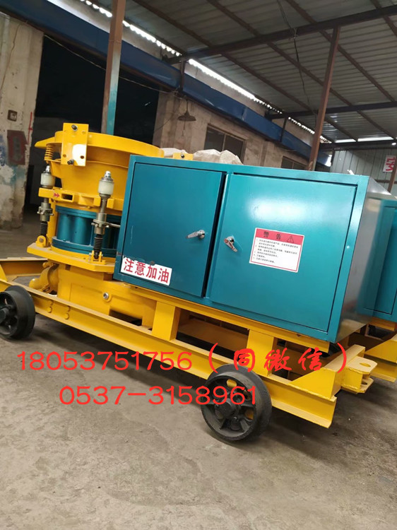 直通转子式不7立方湿式混凝土喷浆机 湿式混凝土喷射机 矿用防爆湿式喷浆机粘结料腔,出料通畅,高效省时:四点弹性补偿压紧,密封效果好,机旁粉尘少,易损件寿命长:采用低压高速涡旋气流输送,克服物料输送中粘结,堵管和脉冲离折等问题,料流均匀,连续稳定:新型喷头,出料弯头装置,改善喷敷效果,回弹少,喷层质量高。机器底盘可以装配成轮胎式、滑撬式和各种轨距的轨轮式。