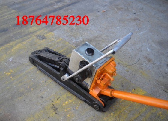 将手柄插入手柄套,上下扳动手柄,通过手动柱塞泵将压力油压入油缸,缸体上升,再通过耳轴带动起道杠杆,借助起道杠杆前端的起道轮将钢轨抬起。