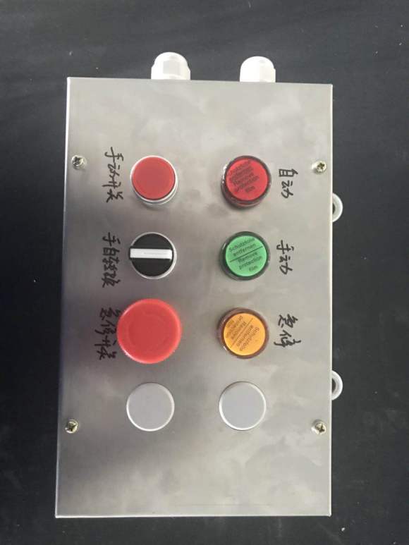 通过按钮箱上的按钮发出指示信号给联机设备发出信号,联机设备接到指示信号后发出执行信号,对按钮箱的LED指示灯提示。AH0.6/12矿用组合按钮箱电气性能: