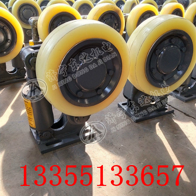 滚轮罐耳是用于矿上提升容器的导向缓冲作用。