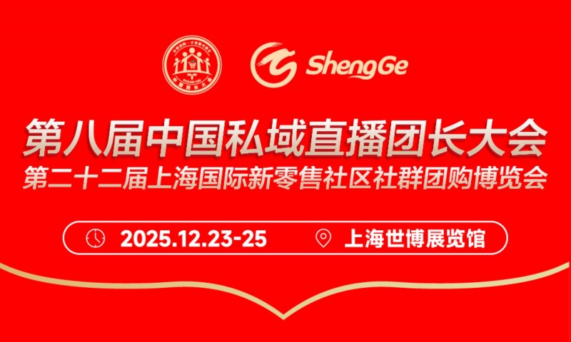 第八届中国私域直播团长大会暨第二十二届上海国际新零售社区社群团购博览会将于2025年12月23-25日在上海世博展览馆继续举办。
