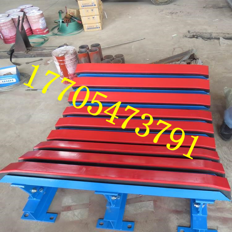 缓冲床主要用于替代缓冲托辊,缓冲床由缓冲条组成,而缓冲条主要应用优良的高弹性特种橡胶层充分有效吸收了物料下落时的冲击力,大大降低了物料下落时对输送带的冲击,真正的改善了落料点的受力状况。并采用特殊的UHMW高分子聚乙烯表面,使输送带与缓冲条之间的摩擦系数降到z低,且耐磨性好。缓冲床的使用保证了输送带的面与面的接触,受力均匀,有效防止了由于托辊断裂、脱落造成的皮带纵向撕裂,同时大大降低了皮带被锐器或尖锐物料穿透后纵向撕裂的概率