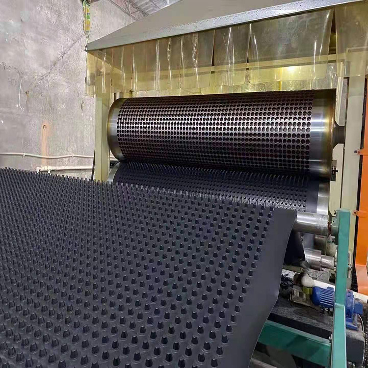 广西凹凸型塑料疏水板屋顶绿化 卷材防水层防排水板供应商 储水排水板自身就具有储水、排水两种概括功用,板材具有空间刚度小高的特征,抗压性显着优于同类产品(能够经过现场试验查验),能够接受400Kpa以上的高抗压负荷,一同能够接受在培养顶板回填土进程中机械碾压的负荷情况。圆锥突台的顶面胶接一层过滤土工布,以阻挠泥土微粒经过,然后避免排水通道堵塞使孔道排水顺利。 传统的排水方法运用砖石瓦块作为导滤层、运用较多的鹅卵石 或碎石作为滤水层、将水排到指定地址。而用排水板代替鹅卵石滤水层来排水则省时、省力又节能、节省出资、还能下降修建物的荷载。杰出的排水体系对土建的施工周期及构筑物的正常运用和寿数具有重要的效果。排水板与多孔渗水管组成一个有用的疏排水体系,圆柱形的多空排水板与土工布也组成一个排水体系,然后构成一个具有渗水、贮水和排水功用的体系.房顶美化排水板铺设规程:整理铺设现场的**,水泥找平,使现场没有显着凹凸处,室外车库顶和房顶花园需求有2%-5%的找坡。