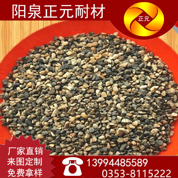 高铝骨料:矾土骨料也叫耐火骨料,品位高的称为高铝骨料,它是耐火浇注料中不可缺少的原料,它能和高铝水泥、细粉、水按比例混合后生成强度非常高的耐火混凝土,我公司生产的矾土骨料是采用高品位密质铝石,经旋窑煅烧而成,具有密度大、耐火度高等特点,产品规格:0—3mm、3—6mm、10—15mm,也可根据用户要求生产。