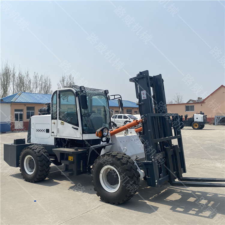 越野式叉车又叫野战叉车,它具有良好的机动性、越野性可靠性。是一种可以在坡地和不平地面上安全高地进行货物装、卸、堆垛及搬运作业的工程车辆平衡叉车一样.它可以装置货叉或更换多种属具来提高作业效率。越野叉车适用于道路修筑、城市建设、环境卫生、石料场、中小型土木工程、车站、码头、货场、仓库等地方,主要用来转运石料、设备、货物、城市垃圾箱以及集装物料等