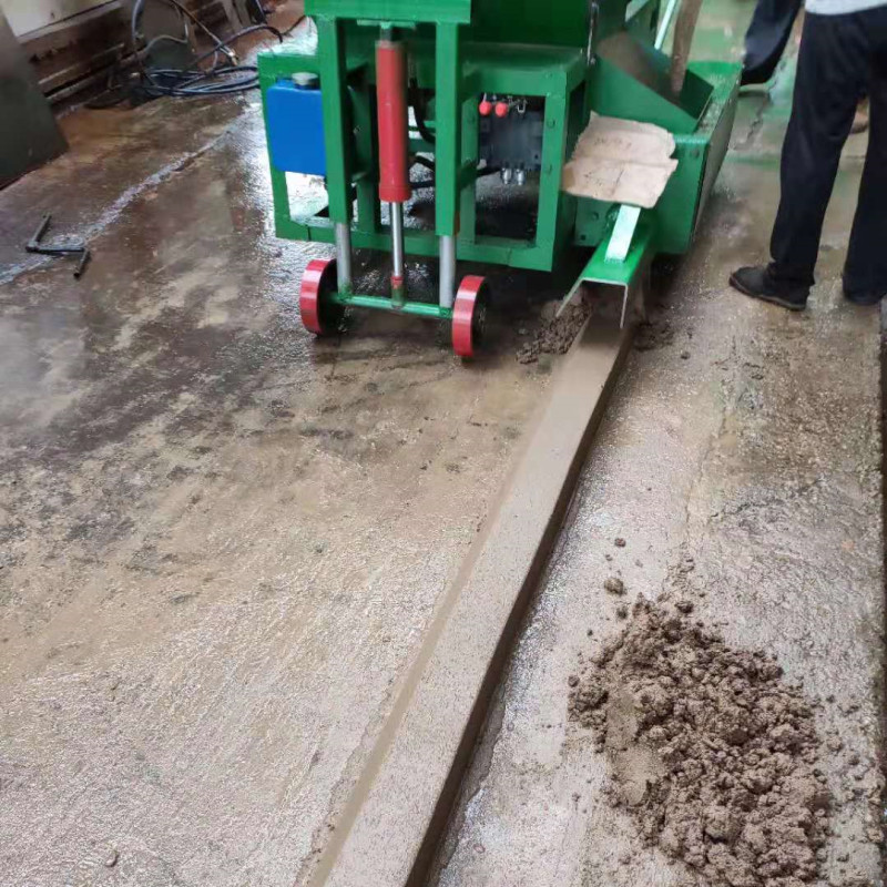 2、安放路缘石成型机:将机器前端的指针对准放好的测线,确保机器沿放好的线位进行行走。