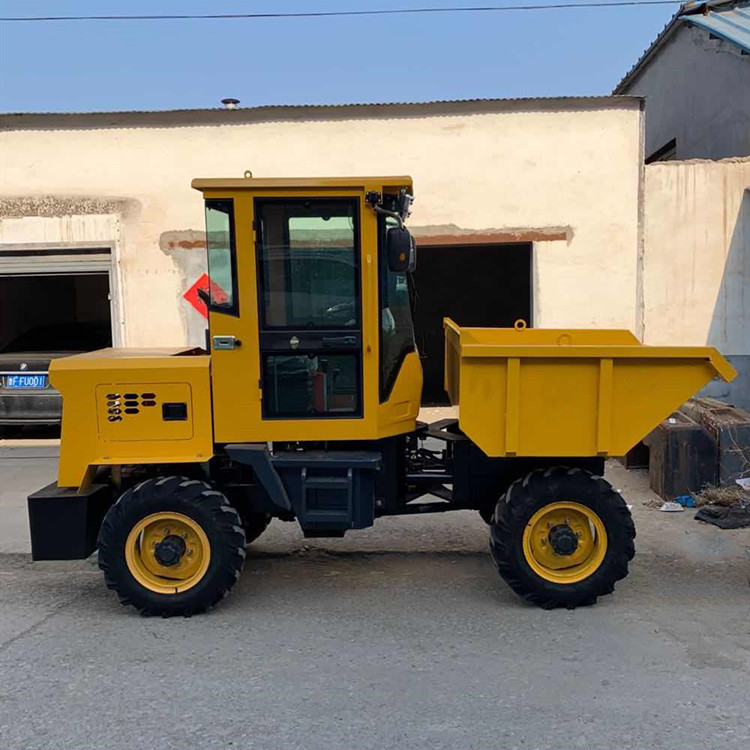 全液压翻斗车,采用四轮驱动,全液压铰接式转向,液压翻斗,低压宽断面轮胎,可摆动后桥,双管路气压制动,具有驱动力大,越野性能好,转弯直径小,操纵轻便灵活,简易式驾驶棚造型美观,独特。该产品广泛应用于建筑、筑路、矿山、水利等部门对混凝土、土石方等散装物料做中短距离运输,与挖掘机、装载机、搅拌站配套使用更能发挥其机动灵活,作业效益高的优势。