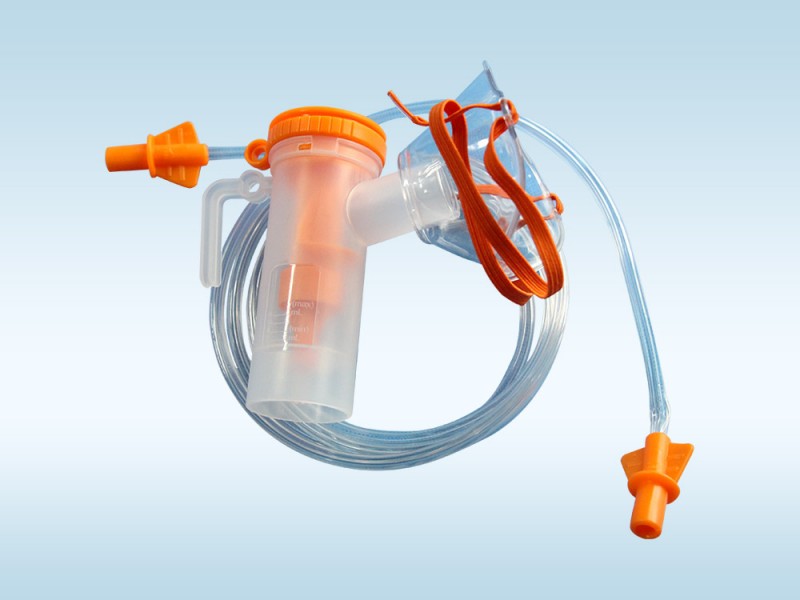 组成:面罩式雾化器由吸氧面置、雾化杯、输氧管体和接头组成;咬嘴式雾化器由咬嘴、雾化杯、输氧管体和接头组成;综合式雾化器由吸氧面置、咬嘴、雾化杯、输氧管体和接头组成。产品应无菌。经环氧乙烷灭菌后,环氧乙烷残留量应不大于10μg/g。一次性使用