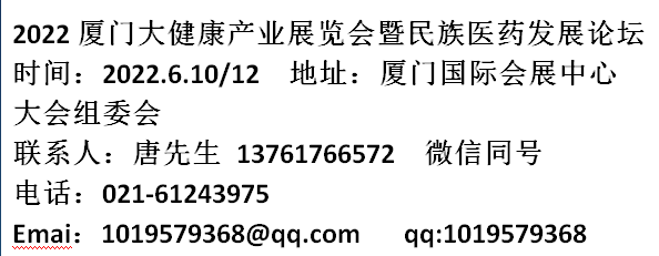 2021年为十四五规划开局之年,为深入学习贯彻落实十九届五中全会和《国务院关于促进中医药传承创新发展的意见》的精神,深入贯彻中医药工作的一系列重要论述;以“健康中国”和完善医疗卫生服务体系建设为目标,增进和维护各族人民群众健康,拓展中医药服务领域,促进民族医药卫生事业的发展,展示新中国成立以来民族医药卫生事业的成果。由中国民族贸易促进会、中国民族卫生协会、中国民族医药学会、中国药膳研究会、中国民间中医医药研究开发协会、中国优质农产品开发服务协会共同发起主办的首届民族医药卫生发展大会暨中医药健康产业博览会,定于2022年6月10至12日在厦门国际会展中心隆重召开。大会以传承精华、守正创新为主线,坚持发展民族医药经济,发掘民族医药宝藏,传承民族医药经典,弘扬民族医药文化,促进民族卫生事业的健康发展,改善民族地区医疗卫生条件,培养民族卫生人才,提升民族医药卫生事业的整体服务水平。