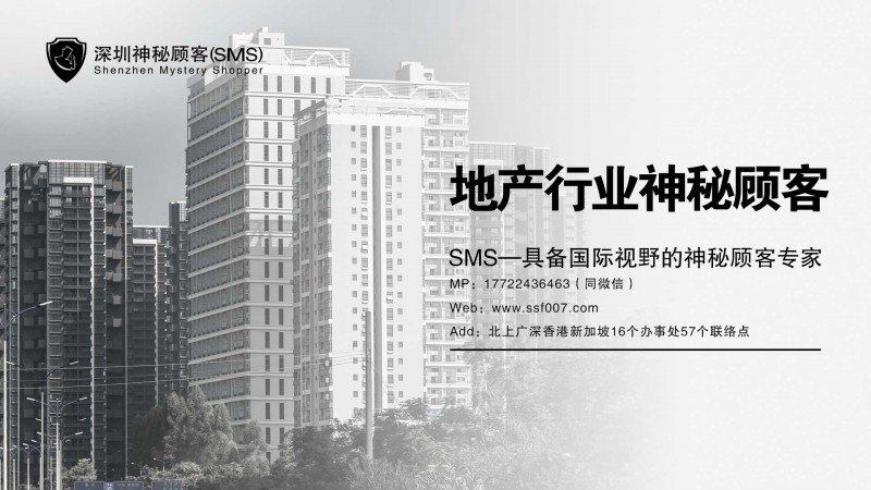 深圳神秘顾客有限公司(SMS)每年执行房地产行业神秘顾客调查样本上万个,服务客户包括万科、碧桂园、恒大、宝能、中骏、龙大等地产企业。
