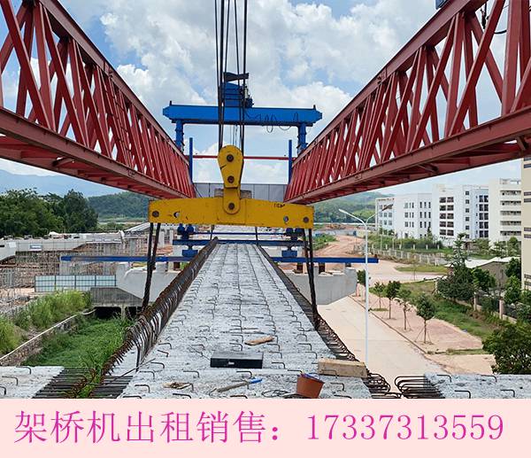 贵州铜仁架桥机租赁厂家工程用门式起重机主要适用于公路、桥梁、电厂等建设工场,进行一般的装卸及起重搬运作业。整机采用桁架结构,自重轻,轮压小,xing能可靠。主要采用型钢拼接而成,从其结构上一般分为单主梁和双主梁形式,起升机构一般为卷扬机,根据其工作特xing,龙门吊销售厂家,起升度和运行速度较慢,造价较低,适合工地使用。